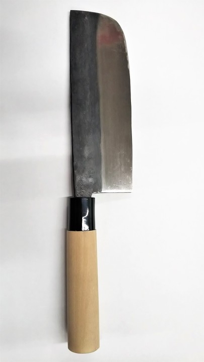 日本刀の伝統技術をそのまま生かし、一丁一丁手造り鍛造された最高級包丁。刃身には鋼材の最高峰、青紙鋼を使用。高い硬度を有し鋭利性、耐摩耗性に大変優れております。