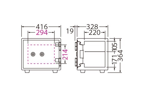 - 外寸 W416×D347×H364 内寸 W356×D220×H276 質量 27㎏
