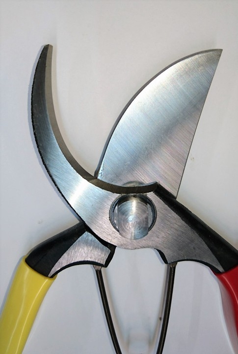 新品の時は、刃がとても鋭利に付いているので齧りやすい状態です。馴染みが出るまではなるべく細い枝から順に切り慣らしてください。やむを得ず、太い枝を切らざるを得ない時は、刃の根本の方で鋏を枝に対して四十五度の角度に入れてゆっくり回す様に切ってください。また、力を入れて切る時は、刃を捻らないで垂直に降りる様に留意してください。